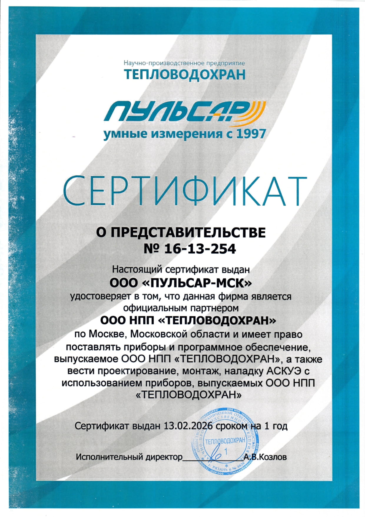 Программный комплекс «Пульсар» предназначен для работы на верхнем уровне измерительной автоматизированной системы контроля и учета энергоресурсов «Пульсар» и обеспечивает сбор показаний с различных типов счетчиков энергоресурсов (воды, тепла, газа, электроэнергии), ведения архивов потребления ресурсов, формирования отчетов различного вида, а также технологического, контроля параметров энергосбережения и мониторинга нештатных ситуаций.